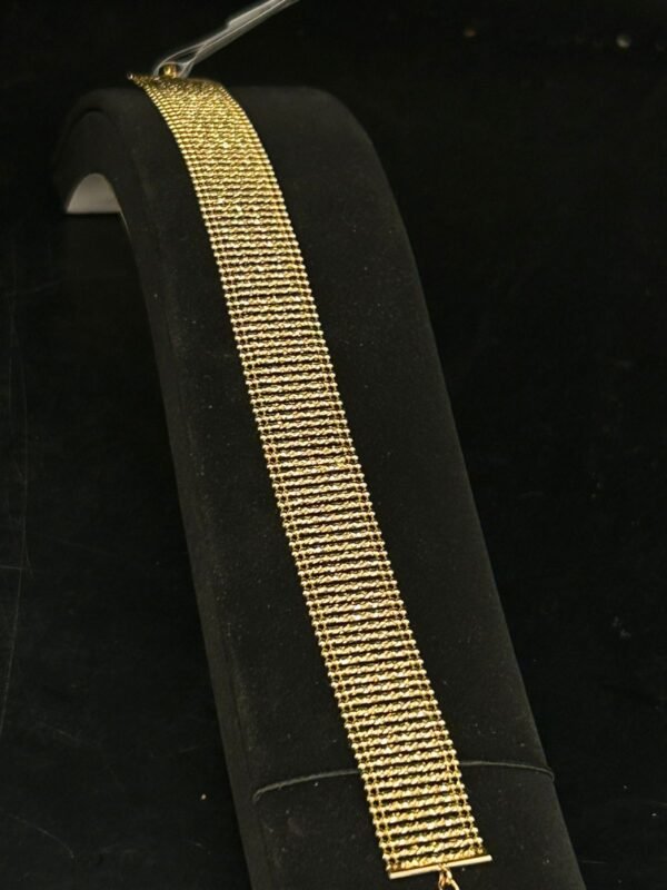 تم تصنيع اسواره انسيال عيار 21 من الذهب عيار 21 عالي الجودة، مما يضمن لك مظهراً مشرقاً ولمعاناً يدوم طويلاً. الوزن المثالي والتصميم المتقن يجعلها عملية ومريحة للارتداء طوال اليوم دون أي إزعاج. إنها ليست فقط قطعة مجوهرات، بل استثمار يدوم معك لسنوات عديدة.
