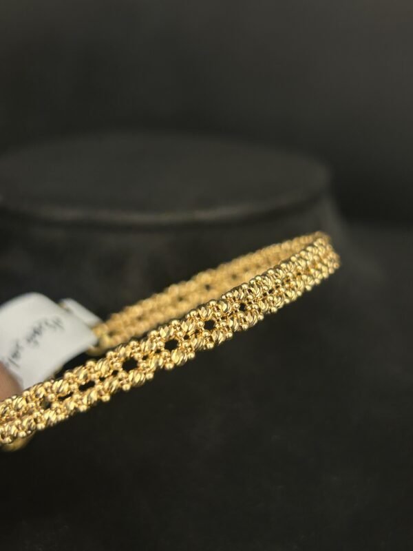 الذهب المستخدم في هذه الاسواره والخاتم مصنوع من عيار 21، مما يضمن متانة وقيمة طويلة الأمد لهذه القطع. يتميز عيار 21 بنقائه ولمعانه البارع الذي يضيف إشراقة مميزة إلى إطلالتك. سواء كنتِ تبحثين عن هدية مثالية أو قطعة تعكس شخصيتك، فإن هذا المنتج يحقق لك كل ذلك وأكثر.