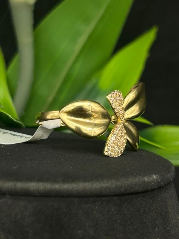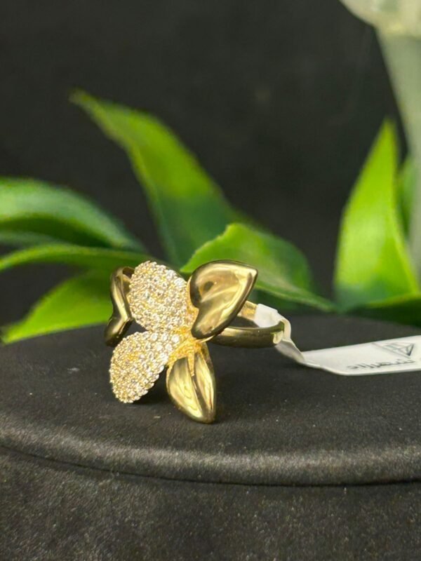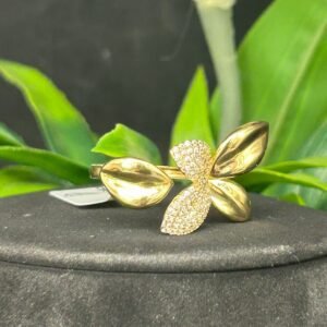 تم صناعة الخاتم من ذهب عيار 18 المعروف بجودته ومتانته. إلى جانب الرقِّي، يقدم عيار 18 مقاومة ممتازة ضد التلف مع مرور الوقت، ليصبح جزءاً دائمًا من مقتنياتك الثمينة. كما أن الذهب عيار 18 يحتفظ بلونه اللامع الجميل الذي يضيف إشراقًا لكل إطلالة من إطلالاتك.