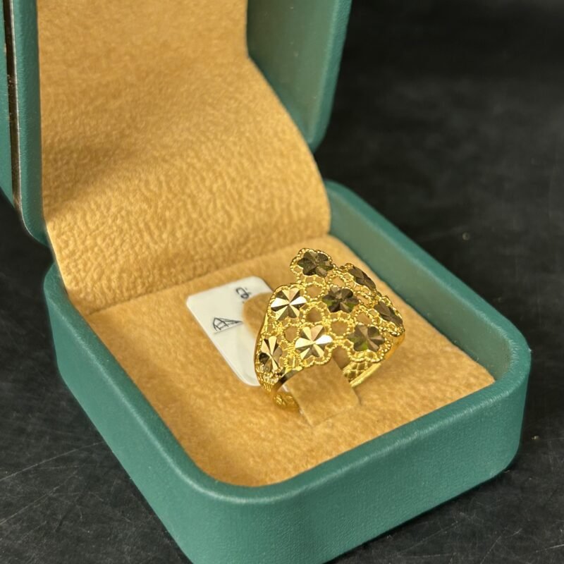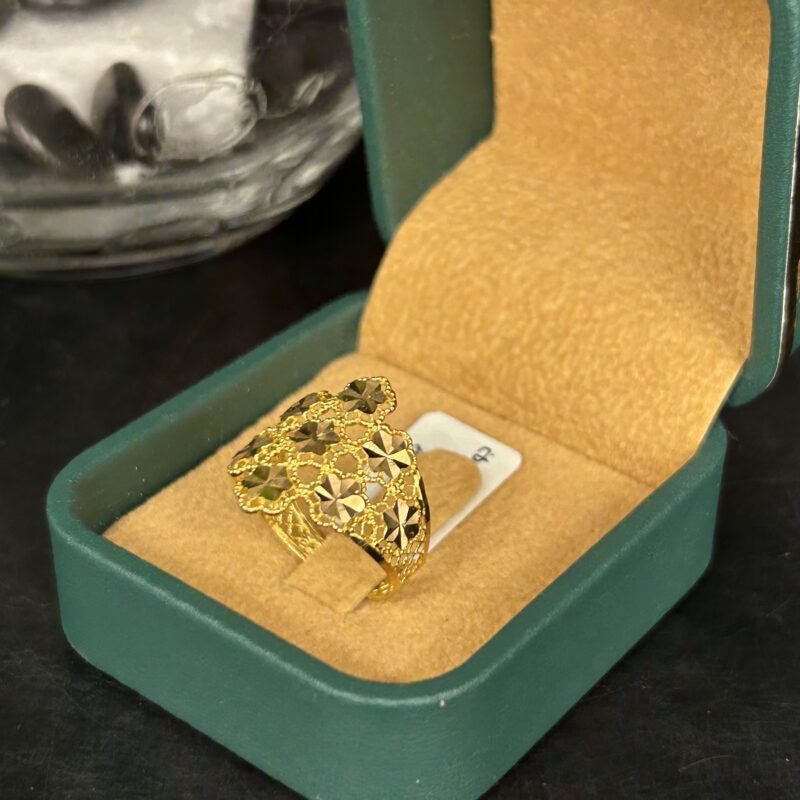 تم صناعة هذا الخاتم من مواد عالية الجودة لضمان عمر طويل ولمعان دائم. الذهب عيار 21 معالج بدقة لضمان مظهر فريد يلفت النظر ويقدم شعورًا بالثقة خلال ارتدائه. إنه الخيار الأمثل لمن يبحثون عن قطعة مجوهرات أنيقة وعملية تسير مع الموضة.