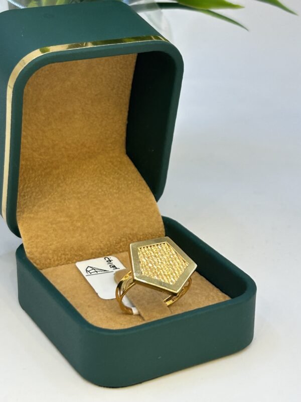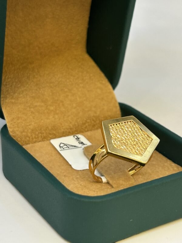 إلى جانب كونه مصنوعًا من ذهب عالي الجودة، فإن خاتم الذهب عيار 18 يتميز بمتانته، مما يجعله قادرًا على التكيف مع الاستخدام اليومي دون أن يفقد من رونقه أو قيمته. هذه القطعة الأنيقة تضيف لمسة من الفخامة لرونقك الخاص، كما أنها تشكّل هدية قيمة ورمزية تقدمها لأحبائك في المناسبات الخاصة كالأعراس أو أعياد الميلاد.