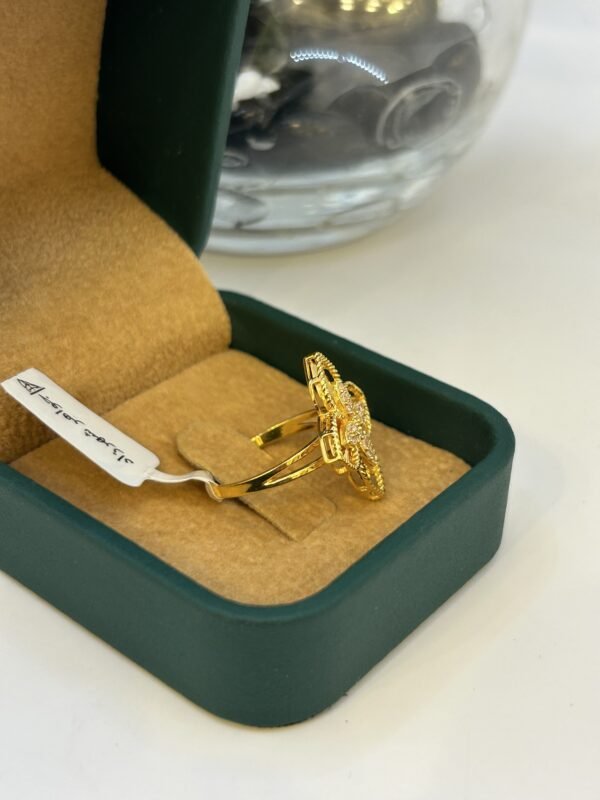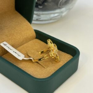 الخاتم مصنوع من الذهب النقي عيار 21، مما يعزز جمال المنتج وقيمته. يتميز بقوامه اللامع ووزنه المريح الذي يضمن تجربة ارتداء ممتعة على مدار اليوم. بالإضافة إلى ذلك، تأتي تفاصيل التصميم لتكون مثالية لمواءمة كافة الأساليب الشخصية، مما يجعله قطعة تناسب الجميع. الذهب عيار 21 يشتهر بصلابته وجودته العالية، مما يجعله خيارًا مستدامًا يدوم لسنوات طويلة.