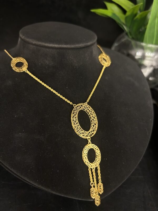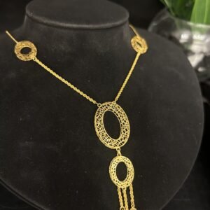 يتميز طقم ذهب عيار 21 بتصميم عصري وفريد يجمع بين التقليدي والحديث بطريقة رائعة. سواء كنت تبحثين عن طقم يناسب حفلة زفاف أو حضور مناسبة خاصة، فإن هذا الطقم يبرز جمالك ويضيف لمسة من التميز إلى إطلالتك. يمكن ارتداؤه مع الملابس التقليدية أو العصرية للحصول على مظهر مثالي في كل الأوقات.