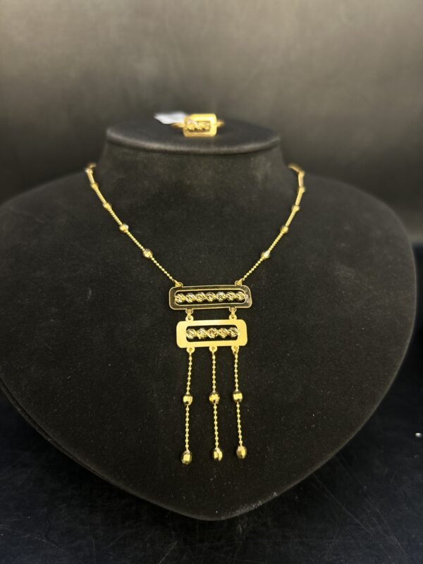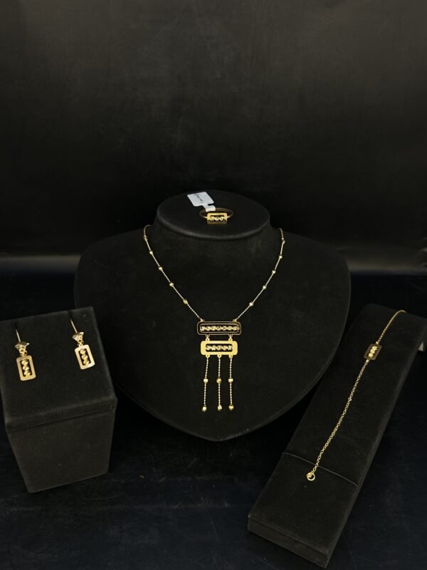 اختيار الطقم المميز والراقي عيار 21 هو خيار يترجم حبك للجمال والأناقة، ويضيف لمسة من الفخامة إلى حياتك اليومية أو مناسباتك الخاصة. اقتنيه الآن واستمتع بمظهر جذاب لا يضاهى!