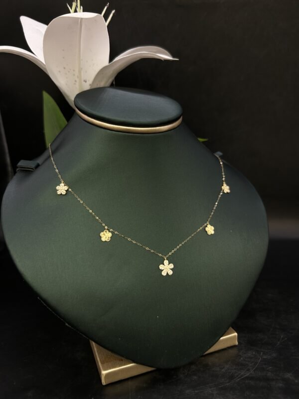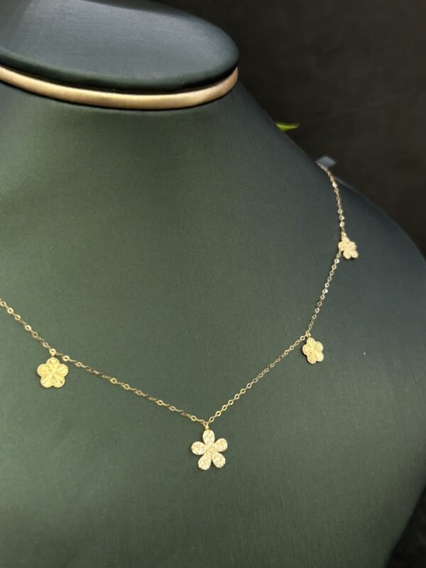 عقد الذهب عيار 18 مصنوع من أفضل أنواع الذهب، يضمن المتانة والقيمة، ليبقى مصدر الأناقة على مر السنوات. مع التحمل العالي وكونه مضادًا للتغيرات، يمكنك الاعتماد عليه ليكون معك في كل خطوة في حياتك. ارتديه بفخر وزد من تألقك وجاذبيتك مع هذه القطعة الاستثنائية.