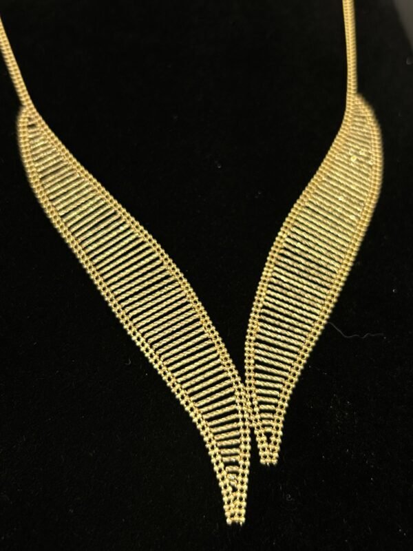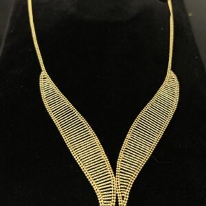 عقد ذهب عيار 18 مصنوع من الذهب الأصلي عالي الجودة ويتميز بتصميم دقيق يبرز جمال المعدن الطبيعي. يضيف لمعان العقد لمسة فريدة على الإطلالة سواء كنت ترتديه في المناسبات أو الاستخدام اليومي. إنه خفيف الوزن ومريح على الرقبة، مما يجعله مثالياً للاستخدام اليومي الطويل دون أي إزعاج.