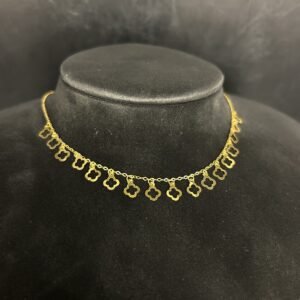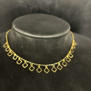 هذا العقد مصنوع من ذهب نقي عيار ٢١، المعروف بقيمته وجودته. يتميز بقوة تحمل عالية، مما يجعله خيارًا آمنًا للاستخدام اليومي دون فقدان لمعانه أو رونقه. كما أن تصميم العقد يراعي التفاصيل الدقيقة التي تمنحه لمسة فريدة تمنع أي شعور بالملل.