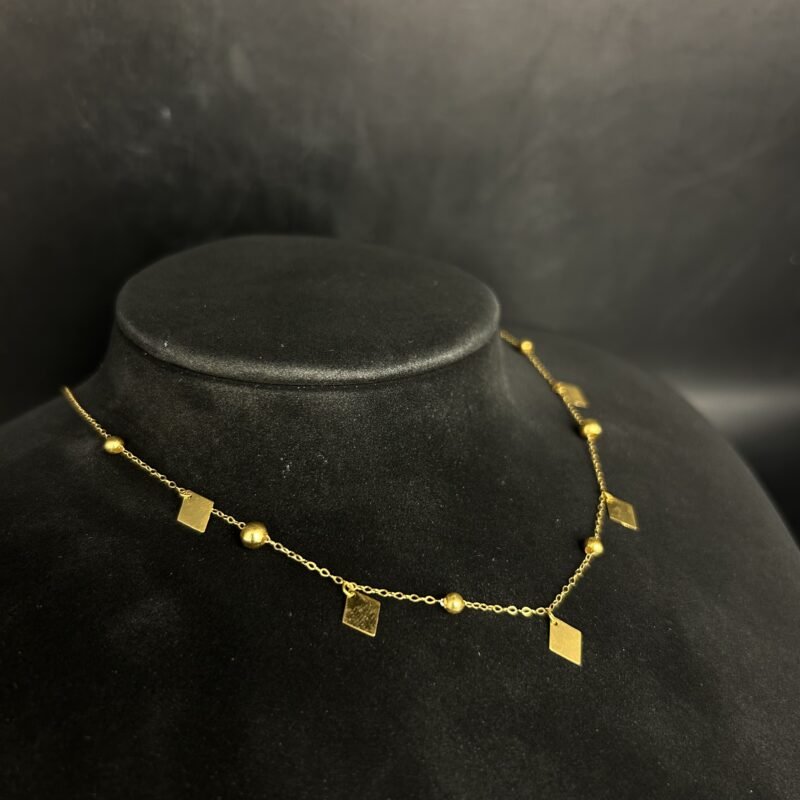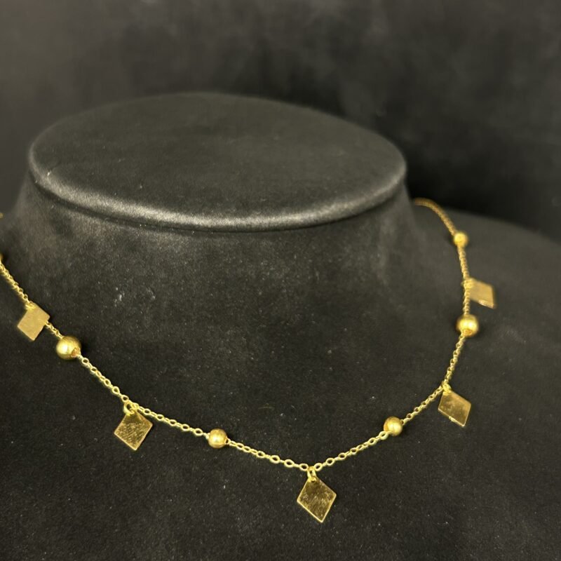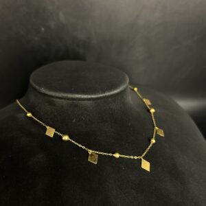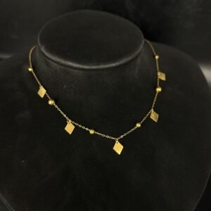 تم صنع العقد باستخدام ذهب عالي الجودة بعيار أصلي، مما يضمن المتانة والقيمة على المدى الطويل. كما أن الحرفية المستخدمة في التصميم تعكس التزامنا بأدق التفاصيل، ليكون لديك قطعة فريدة تتماشى مع جمال الذهب ونقائه.