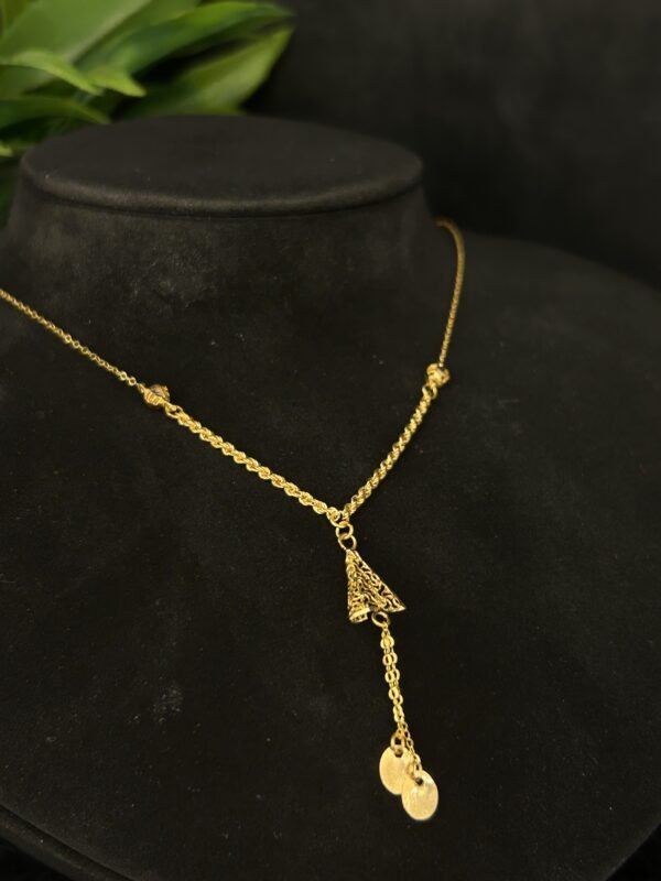 عقد ذهب عيار 21 هو الخيار المثالي لإبراز أناقتك في المناسبات الخاصة والسهرات الفاخرة. يناسب تصميمه المتميز جميع الأساليب، من الكلاسيكية إلى الحديثة، ويمكنك تنسيقه بسهولة مع ملابسك اليومية أو مع أرقى الفساتين. بفضل لمعانه الرائع وجمال الذهب الفاخر، سيجذب الأنظار ويمنحك إحساسًا بالثقة والتألق في كل لحظة.