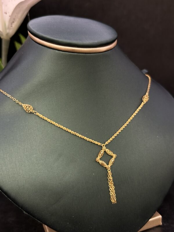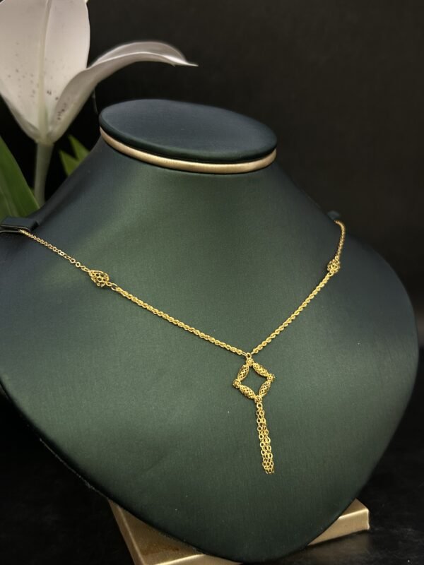بادر الآن بإضافة هذه القطعة الرائعة إلى مجموعتك أو شاركي جمالها مع أحد الأحباء. عقد ذهب عيار 21 هو استثمار في الأناقة والجمال، ويجمع بين النقاء، الجودة، وجاذبية التصميم.