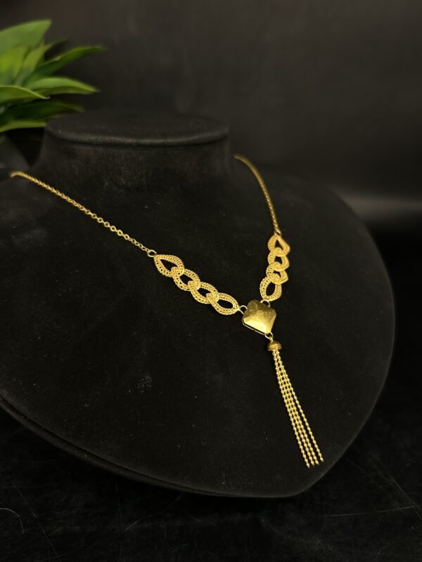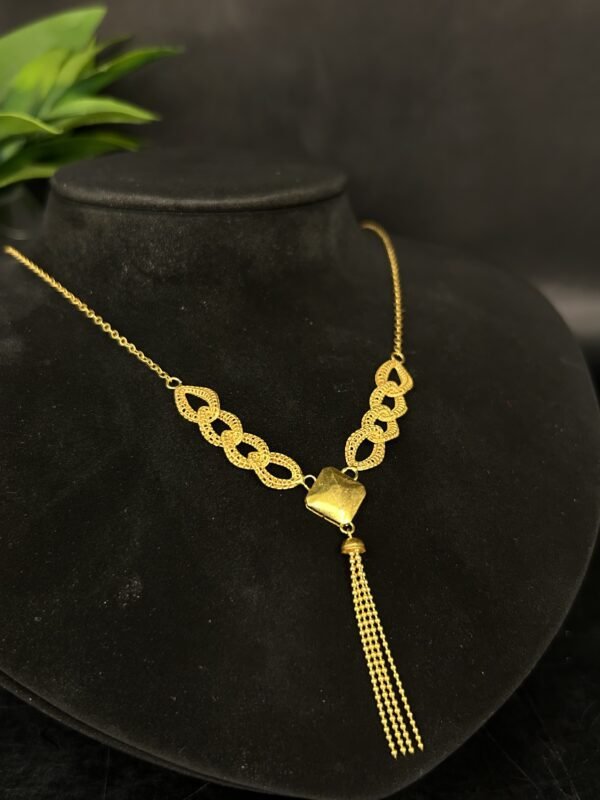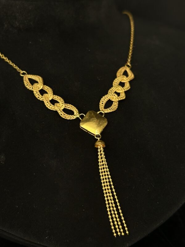 عقد الذهب عيار 21 من مجوهرات جواهر شهرزاد يجمع بين الدقة في التصنيع والجمال الأخاذ في التصميم. تم تصميمه ليكون قطعة تلفت الأنظار وتكمل إطلالتك بلمسة من الفخامة. سواء كنت ترتدينه في مناسبات رسمية أو غير رسمية، فهذا العقد سيساعدك على التعبير عن شخصيتك الراقية وأسلوبك المميز.