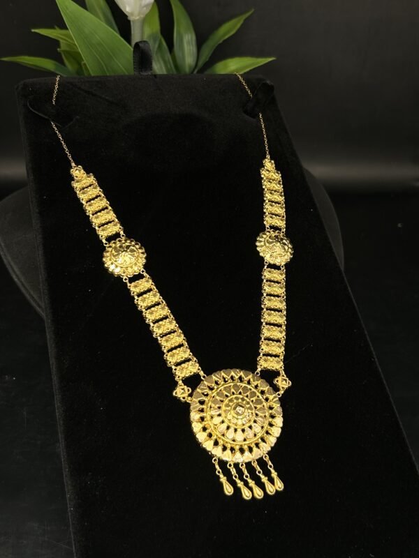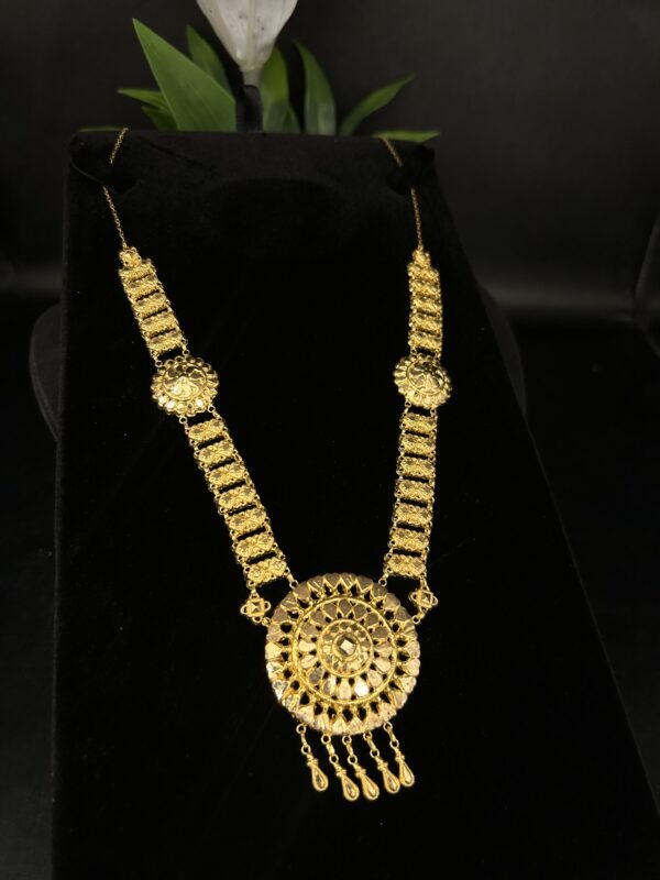 عقد ذهب عيار 21 كرسي جابر هو الاختيار الأمثل لكل امرأة تبحث عن قطعة مجوهرات تضيف لمسة من الجمال والرقي إلى إطلالتها. يتميز هذا العقد بتصميمه الكلاسيكي المستوحى من الفنون التراثية، مما يجعله مناسبًا للمناسبات الخاصة أو للاستخدام اليومي لإكمال إطلالتك بأسلوب مميز.